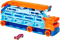 Zažijte dvojnásobnou porci akce s přepravníkem, který se změní na gravitační dráhu! Velký vůz na šesti masivních kolech bezpečně odveze a uskladní celou sbírku a jediným krokem ho proměníte v 60cm sjezd pro adrenalinové závody.