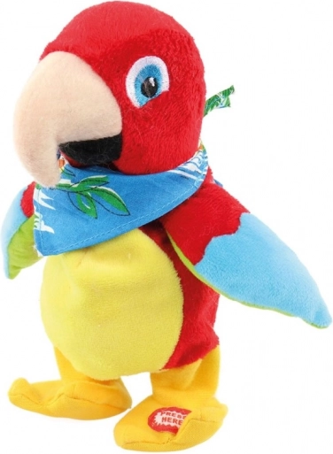 Zábavný interaktivní papoušek, který chodí a opakuje vše, co slyší. Stačí stisknout tlačítko na noze a papoušek vaše slova zopakuje zkresleným hlasem. V pestrých barvách, vysoký 22 cm, ideální hračka pro děti od 3 let.