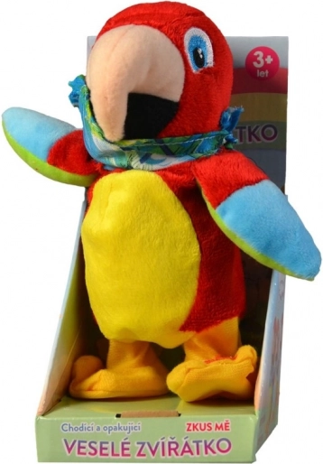 Interaktivní papoušek, který chodí a opakuje slova zkresleným hlasem. Výška 22 cm, pestré barvy, od 3 let. Na 3× AAA baterie. Skvělý dárek pro děti.