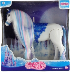 Zábavný chodící kůň pro děti od 3 let, který se pohybuje a vydává realistické zvuky. Užijte si cválání a ržání stiskem tlačítka. Hračka má praktické rozměry pro domácí hraní a přináší spoustu interaktivní zábavy.