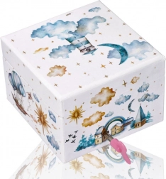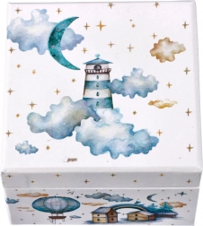 Tento hudební box je zdoben okouzlujícími ilustracemi majáků, balónků a hvězd, což přidává dotek fantazie do každého pokoje.