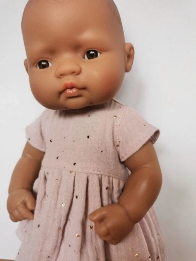 Stylové šaty pro panenku o výšce 32 cm v elegantní tlumené růžové barvě. Vyrobeno v Polsku s důrazem na kvalitu a pohodlí při hře. Ideální doplněk pro kreativní hraní dětí od 3 let. Kvalitní zpracování, jemný materiál a vhodné pro většinu panenek 32 cm.