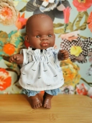 Stylová sada pro panenku o výšce 21 cm s originálním motivem knírků. Vyrobeno v Polsku z kvalitních materiálů, vhodné od 3 let. Lze prát na 30 °C a žehlit na teplotu pro bavlnu. Splňuje CE normy bezpečnosti.