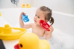 Sada obsahuje roztomilé kachničky a barevné lodičky, které plavou na hladině a přinášejí spoustu radosti při koupání. Díky kompaktním rozměrům se dětem snadno drží, jsou vhodné pro každodenní vodní hry a pomáhají budovat pozitivní rutinu večerní koupele.