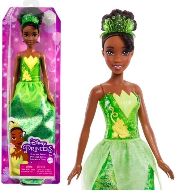 Objevte kouzlo pohádky s panenkou DISNEY PRINCESS Tiana inspirovanou filmem Princezna a žabák. Má třpytivý outfit, snadno sundavatelné doplňky (botičky a tiara) a vlásky vhodné k česání – ideální pro kreativní hraní a vyprávění oblíbených příběhů. Panenka sama nestojí. Barvy a detaily se mohou lišit.