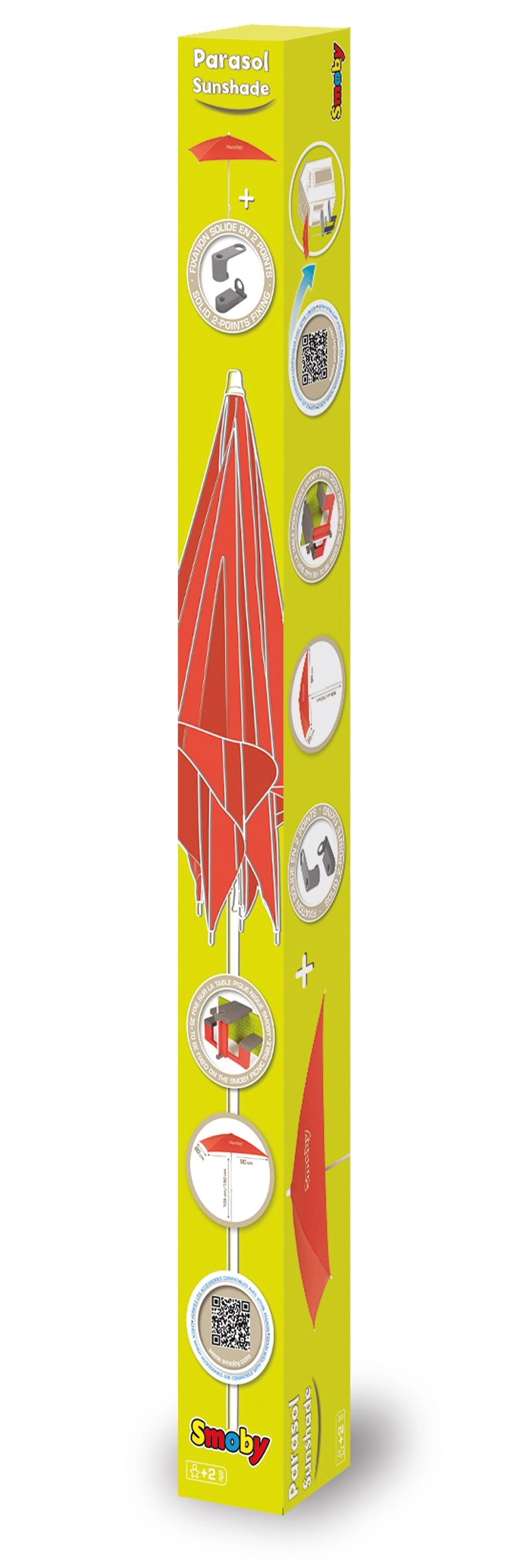 Díky kompatibilitě s piknikovým stolkem SMOBY je montáž snadná a rychlá. Po rozložení má slunečník rozměry 90 × 80 cm, takže poskytne dětem příjemný stín během hry, svačin i kreativních aktivit.