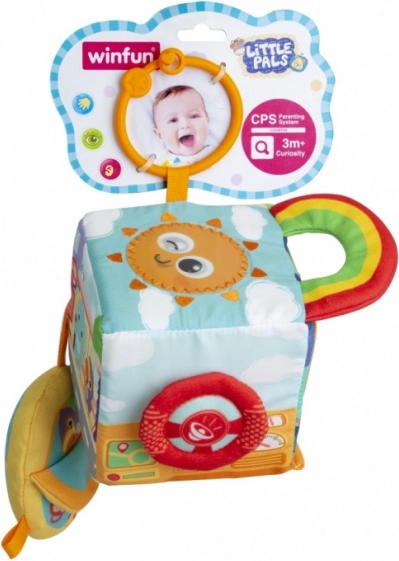 Tato vícebarevná plyšová hračka stimuluje dětské smysly a díky svým unikátním vlastnostem poskytuje nezbytné podněty k rozvoji zraku, sluchu a dotyku. Je vyrobena z bezpečných a měkkých materiálů a každá strana kostky je pokryta jinou grafikou. Intenzivní barvy přitahují pozornost dětí a povzbuzují k pozorování detailů.