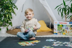 Puzzle obsahuje 15 velkých dílků, které jsou ideální pro malé dětské ručky. Díky velkorysé velikosti se děti snadno naučí jednotlivé dílky spojovat.