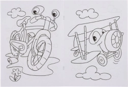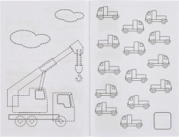 Každý list obsahuje jedinečný motiv - od autíček po různá zvířátka, určený k vybarvení a podněcování představivosti.