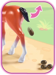 Posuňte ocásek do strany a sledujte, jak koník udělá hromádku – zábava, která učí péči o zvířátka a rozvíjí fantazii.