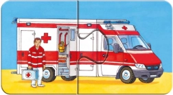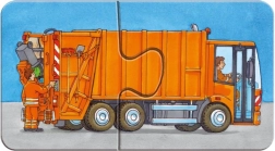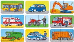 Tato sada obsahuje 9 samostatných puzzle, každé o 2 dílcích, s motivy jako hasič, popelář, bagr, kombajn, autobus či motorka. Díky jednoduchému počtu dílků je skládání ideální pro první seznámení s puzzle a podporuje správný rozvoj dovedností.
