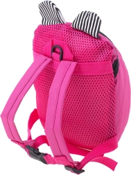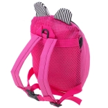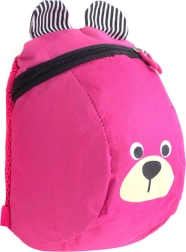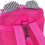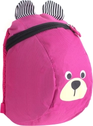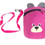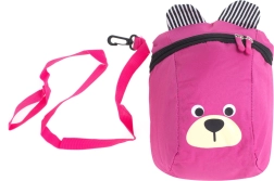 Přátelská tvář medvídka a pruhovaná ouška motivují děti batůžek nosit a pečovat o své věci.