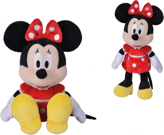 Roztomilá plyšová postavička Minnie Mouse o výšce 25 cm potěší malé i velké fanoušky DISNEY. Měkoučký materiál, klasické červené šaty s bílými puntíky, žluté botičky a vyšívané detaily z ní dělají ideální hračku na mazlení i dekoraci dětského pokoje.