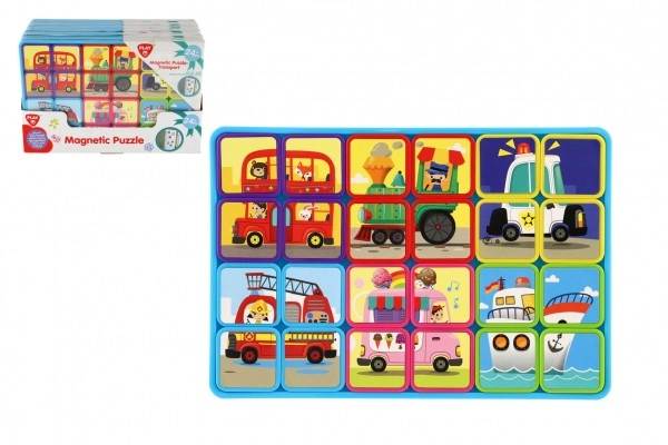 Magnetické deskové puzzle s dopravními prostředky 24 dílků