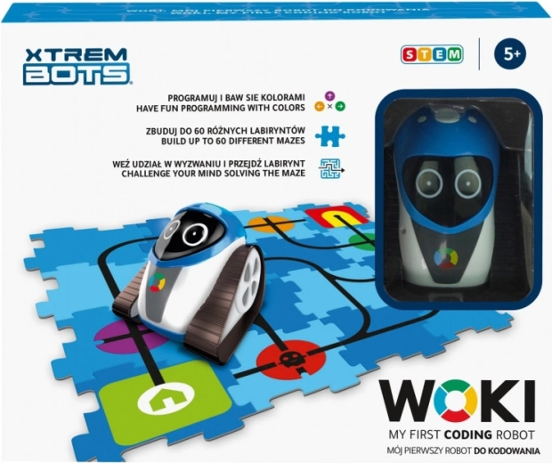 Sestavte bludiště, pomocí barevných kódů naprogramujte jeho pohyb a pomozte Wokimu dosáhnout cíle. Woki je ideální hračka pro rozvoj základů programování u malých dětí. S tímto přátelským robotem se vaše dítě naučí rozlišovat mezi pravou a levou stranou z jakéhokoli úhlu pohledu a procvičí si posloupnost, logiku a prostorové vidění. Zábavnou a postupnou formou se naučí programovat Wokie pomocí barevných kódů.