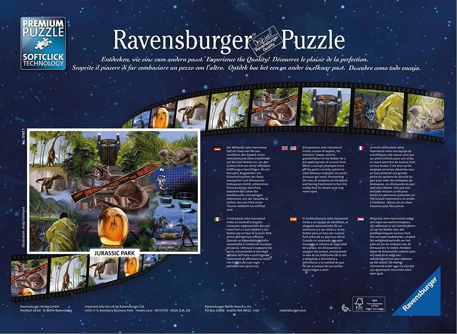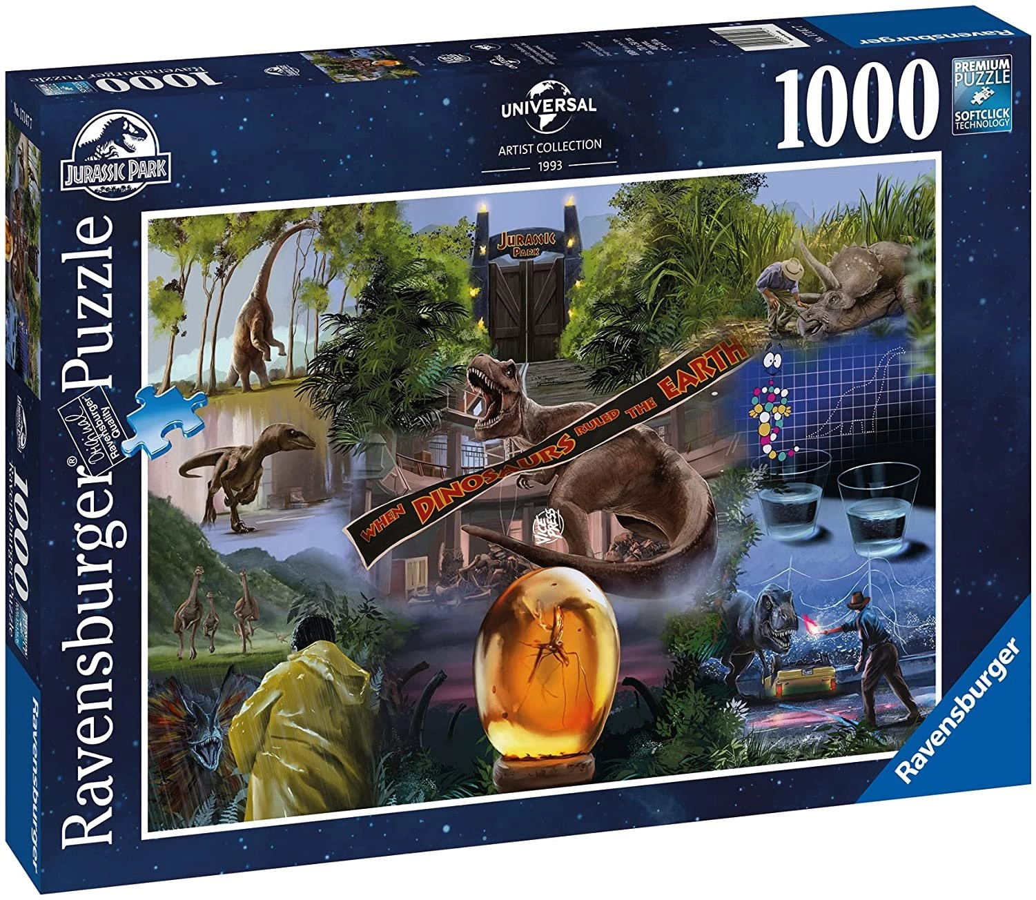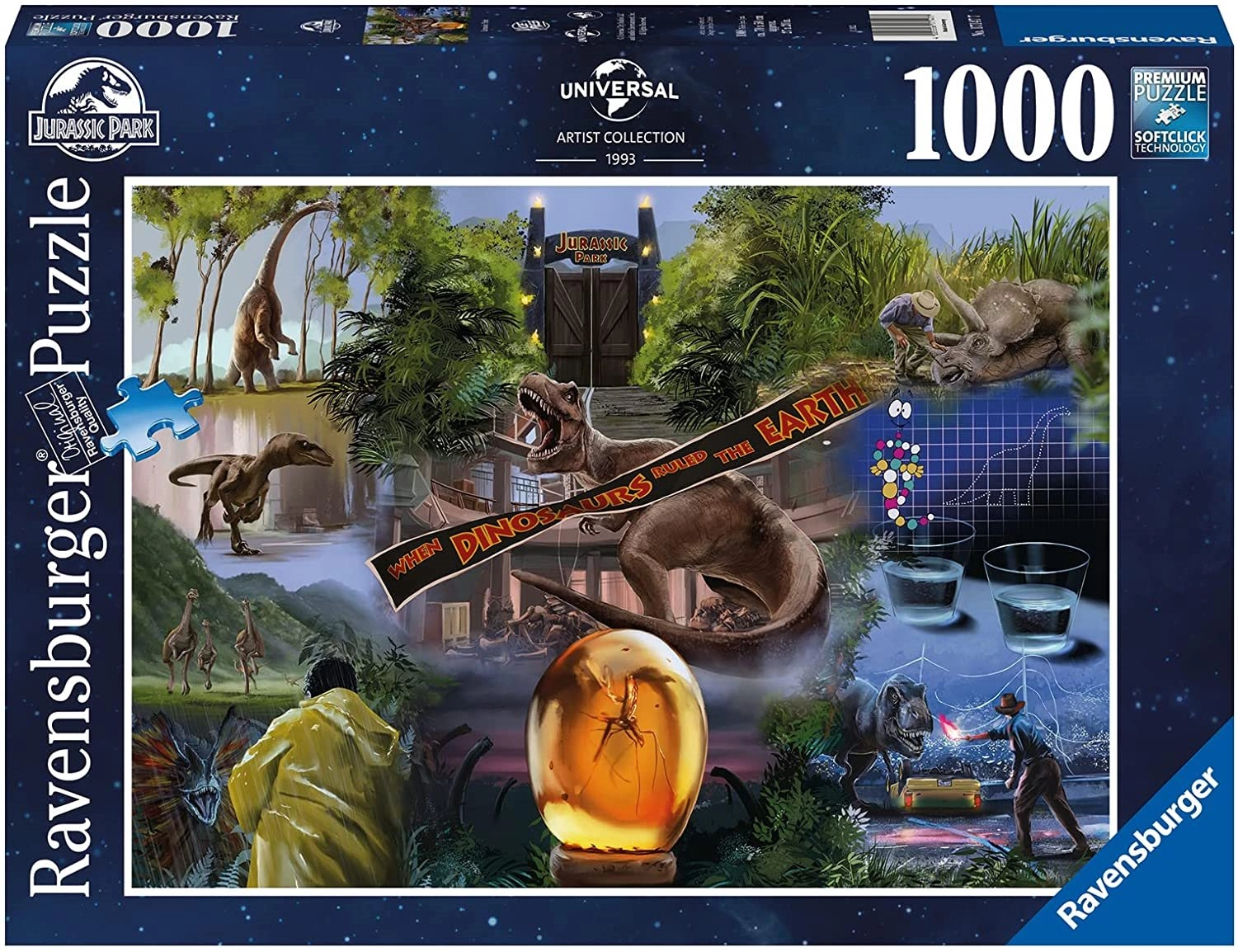 Ponořte se do světa dinosaurů s ikonickým motivem filmu Jurassic Park. Sada 1000dílných puzzle od značky Ravensburger je známá špičkovým zpracováním, přesnými výseky a příjemným pocitem při skládání. Technologie SoftClick zajišťuje, že každý dílek zapadne bez námahy a správně, zatímco povrch se strukturou přírodního lnu minimalizuje odlesky a zvýrazňuje detaily.