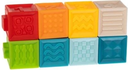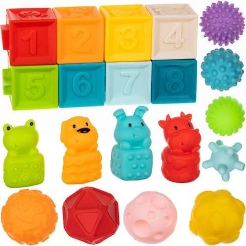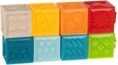 Mají krásné živé barvy, které dokonale stimulují vývoj vašeho dítěte. Díky speciálním prohlubním a výstupkům může dítě spojovat kostky do řad. Smyslové hračky formují schopnost přijímat, chápat a reagovat na podněty z okolí. Pomocí kostek můžeme zlepšit koordinaci pohybu a stimulovat smysly, jako je sluch, zrak nebo hmat. Bloky po stisknutí vydávají jemný klasický zvuk, který bude pro vaše dítě příjemným a zajímavým zážitkem. Bloky jsou vyrobeny ze speciálního měkkého materiálu, který je velmi měkký a lehký a neobsahuje žádné škodlivé látky, takže je lze používat jako kousátko pro batolata. Senzorické podložky jsou vizuálně atraktivní a mají pečlivou, precizní povrchovou úpravu. Jejich pestré barvy, různé tvary a velikosti přitáhnou dětské oči a jistě ho povzbudí ke hře.