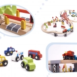 S touto dřevěnou vláčkodráhou si děti užijí hodiny zábavy díky 70 dílům, které stimulují kreativitu a fantazii. Obsahuje různé barevné prvky a dopravní prostředky.