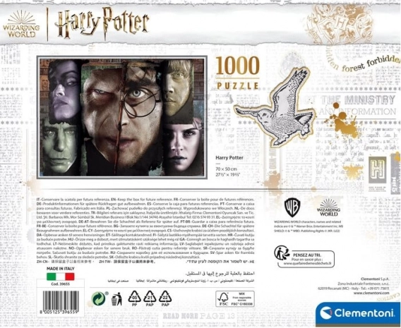 Po složení má puzzle rozměr cca 70 × 50 cm, takže se skvěle hodí k zarámování a vystavení. Kvalitní materiál a přesný tisk zaručují živé barvy a dlouhou životnost. Ideální dárek pro fanoušky HARRY POTTER i milovníky puzzle.