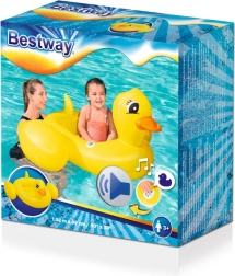Nafukovací kachnička je jedinečný bazénový doplněk, který poskytuje dětem bezpečné a zábavné chvíle ve vodě. S zábavným designem kachničky a integrovaným reproduktorem, který při stisknutí vydává realistické zvuky, si ji vaše děti okamžitě zamilují. Kachnička je navržena pro pohodlné a bezpečné sezení, čímž umožňuje dětem užívat si vodní radovánky bez obav.