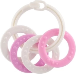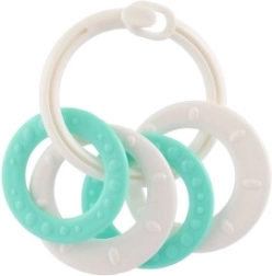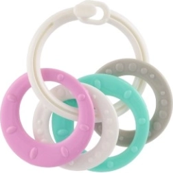 Vhodné pro děti od 3 měsíců, tento kousátkový set obsahuje barevné plastové kroužky, které jsou nejen lehké, ale také napomáhají vývoji jemné motoriky. Díky různorodým strukturám a tvarům poskytuje tato hračka více smyslových podnětů, které jsou určeny pro teething období dítěte.