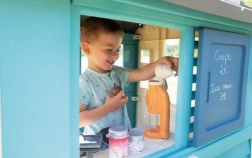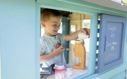 Domeček je vhodný pro zahradu i interiéry, kde se stane centrem dětské zábavy a imaginární hry.