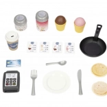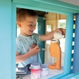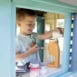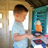 Domeček zahrnuje 18 různých plastových doplňků jako nádobí a hračka na jídlo, které rozvíjejí představivost a kreativitu dítěte.