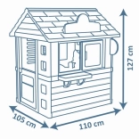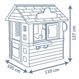 Domek je vybaven pevnými a stabilními dvojitými plastovými stěnami, které odolají i nepříznivému počasí a silnému větru. Rozměry 98 x 110 x 127 cm s celkovou výškou 127 cm umožňují pohodlné hraní. Hračky splňují nejvyšší bezpečnostní kritéria.