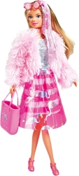 Panenka STEFFI LOVE Flamingo nadchne všechny malé milovnice módy. Styl doplňují růžové průhledné sluneční brýle, velká kabelka s potiskem plameňáka a růžová plastová sukýnka, kterou lze sundat a měnit tak vzhled panenky podle nálady.