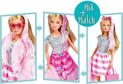 Objevte stylovou panenku STEFFI LOVE Flamingo s bohatou výbavou pro módní hraní. Má dlouhé blond vlasy s růžovými třpytivými pramínky, modré oči a outfit plný lesku – stříbrné tričko, růžovo-bílou sukni a růžový kožíšek. Díky pohyblivým rukám, nohám a hlavě lze panenku snadno stavět do různých póz a tvořit vlastní příběhy.