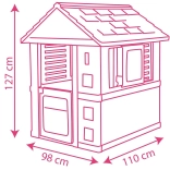 Perfektní pro hraní na zahradě i v interiéru – domek nabízí výborné větrání díky třem oknům, soukromí díky okenicím a pohodlný vstup přes otevírací dveře. Povrch s anti-UV úpravou chrání barvy před sluncem, takže domek dlouhodobě vypadá jako nový.