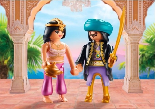 Orientální královský pár oblečený v elegantních róbách vítá své hosty. Tento Playmobil set přináší dvojnásobnou zábavu s detailně propracovanými figurkami.