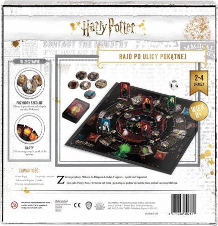 Vstupte do kouzelného světa HARRY POTTER a prozkoumejte Příčnou ulici. Vaším cílem je nasbírat všechny potřebné školní pomůcky – třeba hůlku od Ollivandera – a co nejrychleji se dostat do Bradavic. Cestou vám mohou pomoci i škodit magické karty, a proto je každý tah napínavý. Hrajete za oblíbené postavy jako Harry, Ron, Hermiona nebo Draco, zatímco se snažíte vyhnout Luciusovi Malfoyovi.