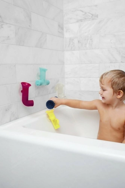 Barevné, L-tvarované hračky zajišťují skvělou zábavu během koupání. Děti si mohou hrát s vodou a sledovat, jak proudí skrz různé potrubní segmenty.