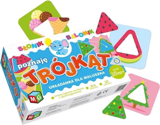 Tato chytrá skládačka učí děti poznávat tvary – konkrétně trojúhelník – hravou formou. Díky velkým a pevným dílkům je manipulace snadná a bezpečná i pro nejmenší. Přiřazování tvarů do správných otvorů podporuje rozvoj manuálních dovedností, koordinaci pohybů a trpělivost. Ilustrace jsou přehledné a barevné, aby dítě udrželo pozornost a lépe se soustředilo na úkol.