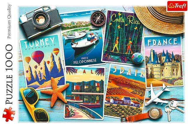 Užijte si relax s kvalitními puzzle o 1000 dílcích s motivem prázdninových pohlednic. Po složení vznikne obraz o rozměru 683 × 480 mm. Puzzle jsou vyrobeny z vysoce kvalitních materiálů, s kalandrovaným, světlo odrážejícím papírem pro pohodlnější skládání. Vyrobeno v Polsku z ekologických materiálů.