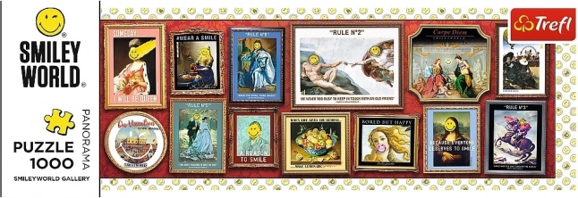 Panoramatické puzzle s veselým motivem SMILEY Galerie nabídnou hodiny klidné zábavy pro dospělé i starší děti. Formát panorama se po složení krásně vyjímá v interiéru a díky kvalitnímu tisku vyniknou všechny detaily.