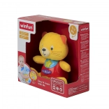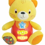 Interaktivní plyšový kocourek nadchne miminka a batolata pestrými barvami, světýlky a příjemnými zvuky. Děti si snadno oblíbí tři podsvícená tlačítka, která spouštějí melodie, zvuky a mluvené fráze a zároveň zábavnou formou seznamují s prvními písmeny a čísly.