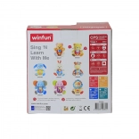 Tři barevná tlačítka na bříšku spouštějí melodie a zábavně učí 3 písmena a 3 číslice – ideální začátek raného učení.
