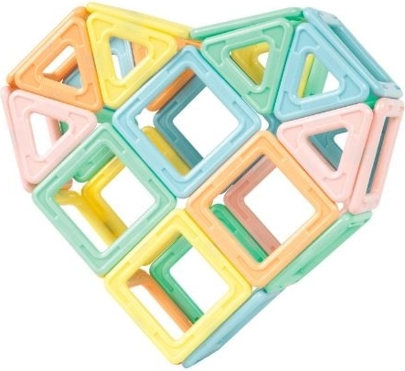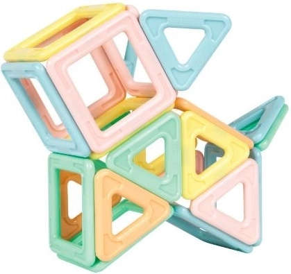 Sada obsahuje 18 čtverců a 12 trojúhelníků v pastelových barvách, které umožňují stavbu rozmanitých modelů.