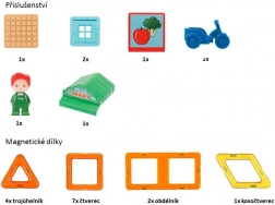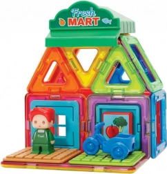 Se stavebnicí Magformers Městečko Tržiště můžete stavět různé architektonické stavby dle vlastní fantazie. Obsahuje 14 magnetických tvarů a 8 funkčních doplňků, včetně malé prodavačky, které umožňují tvořit poloodkryté průřezy, kde jsou z jedné strany vidět vnější kontury stavby a z druhé interiérové řešení.