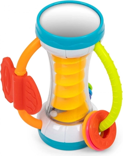 Barevné chrastítko Milly Mally Shaker podporuje smyslový rozvoj a jemnou motoriku dětí od narození. Průhledná část se spirálou a barevnými kuličkami příjemně cinká, tři texturované úchyty usnadňují držení a jeden prvek slouží jako měkké kousátko. Bez baterií, ideální pro každodenní hraní a uklidnění.
