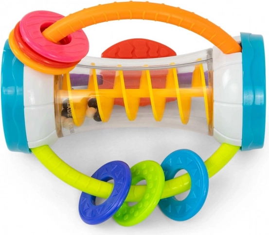 Objevte zábavné a podnětné chrastítko Milly Mally Shaker, které láká děti živými barvami, příjemnými zvuky a rozmanitými texturami. Průhledné tělo se spirálou a kuličkami vytváří při pohybu uklidňující cinkání, které přitahuje pozornost a rozvíjí sluchové vnímání. Tři ergonomické úchyty podporují uchopování i přendávání z ruky do ruky, zatímco integrované kousátko přináší úlevu při prořezávání zoubků.