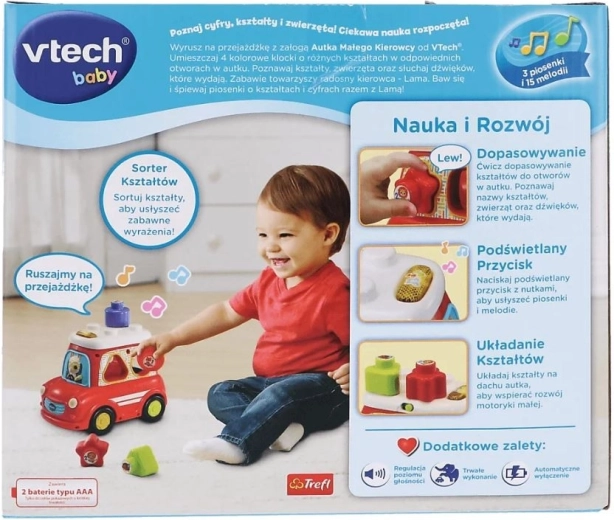 Interaktivní vzdělávací autíčko se sortérem VTech, červené, polský jazyk