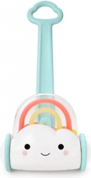 Roztomilý push vozík s motivem obláčku a duhy motivuje děti k prvním krůčkům. Barevné kuličky v duze vytvářejí zábavné praskající zvuky při pohybu, které podporují učení příčiny a následku, rozvoj hrubé motoriky, rovnováhy a koordinace ruka-oko. Ergonomická rukojeť se snadno uchopí a pomáhá budovat jistotu při chůzi.