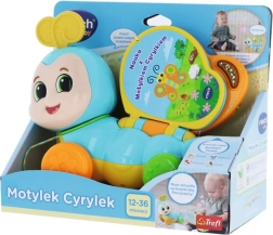 Po zatáhnutí za provázek se motýlek rozjede a doprovodí děti veselými zvuky a frázemi. Podporuje přirozenou touhu lézt a chodit.