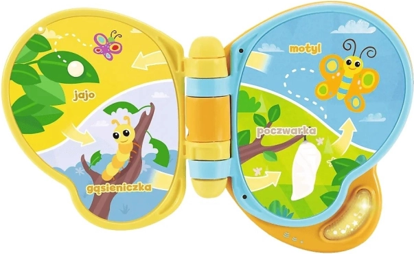 Křídla motýlka slouží jako otevírací knížečka, která pomáhá rozvíjet jemnou motoriku, zvídavost a první znalosti o přírodě. Děti se naučí rozpoznávat fáze vývoje motýla a získají základní vědomosti o zvířatech hravou formou.