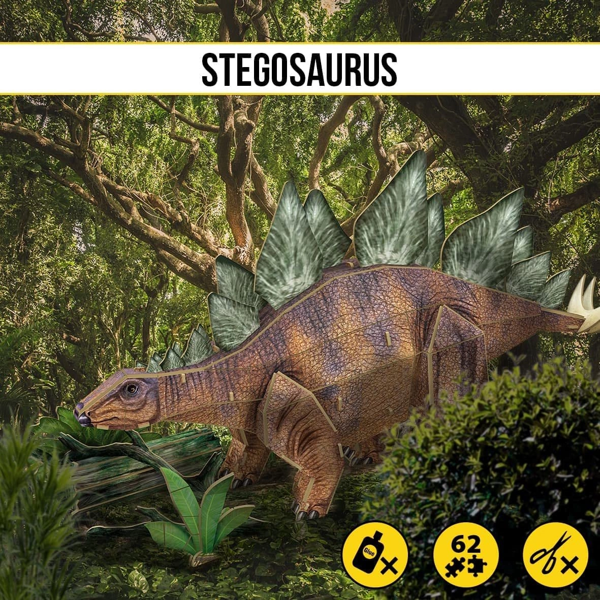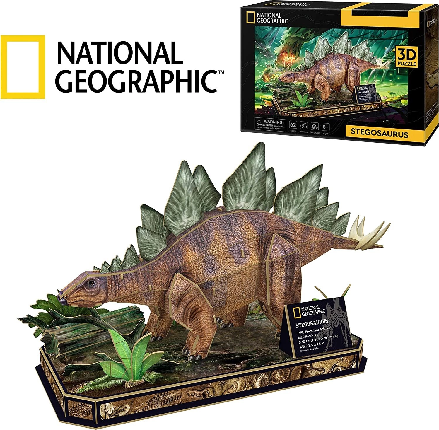 Objevte zábavnou a vzdělávací stavebnici – 3D puzzle NATIONAL GEOGRAPHIC stegosaurus. Sada obsahuje 62 předem vyřezaných dílků z papíru a pěnové desky, které jsou lehké, bezpečné a po sestavení vytvářejí realistický model na podstavci s muzejní jmenovkou.