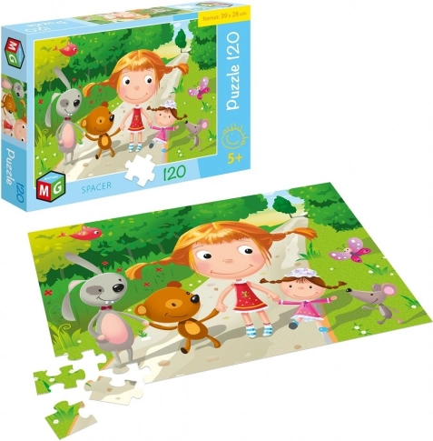 Dětské puzzle s motivem procházky nabídnou 120 pevných dílků, které se snadno uchopují, a po složení vytvoří obrázek o rozměrech 39 × 28 cm. Skvělé pro rozvoj představivosti, logického myšlení a trpělivosti u dětí od 5 let.