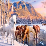 Tento půvabný motiv zachycuje klidnou zimní scenérii s koňmi u potoka a horským panoramatem. Puzzle o 500 dílcích nabízí vyváženou výzvu pro začínající i pokročilejší skládače a díky kvalitním materiálům se skvěle skládá i opakovaně.